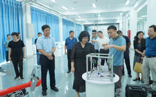 8月11日,省工业和信息化厅海洋装备产业处负责人辛颖带领省无人机产业联盟、山东交通学院、长光禹辰信息技术与装备(青岛)有限公司等一行5人在市工业和信息化局党组副书记、副局长孙高亮等的陪同下,来校调研航空及无人机产业发展情况。QY千亿球友会党委委员、副校长李伟年出席相关活动。